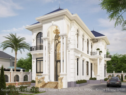 Biệt thự mang đậm phong cách tân cổ điển (Neo-Classical), thể hiện sự sang trọng, bề thế và quyền uy. Đây là phong cách thường được giới thượng lưu ưa chuộng nhờ sự kết hợp hài hòa giữa cổ điển phương Tây và đường nét hiện đại.